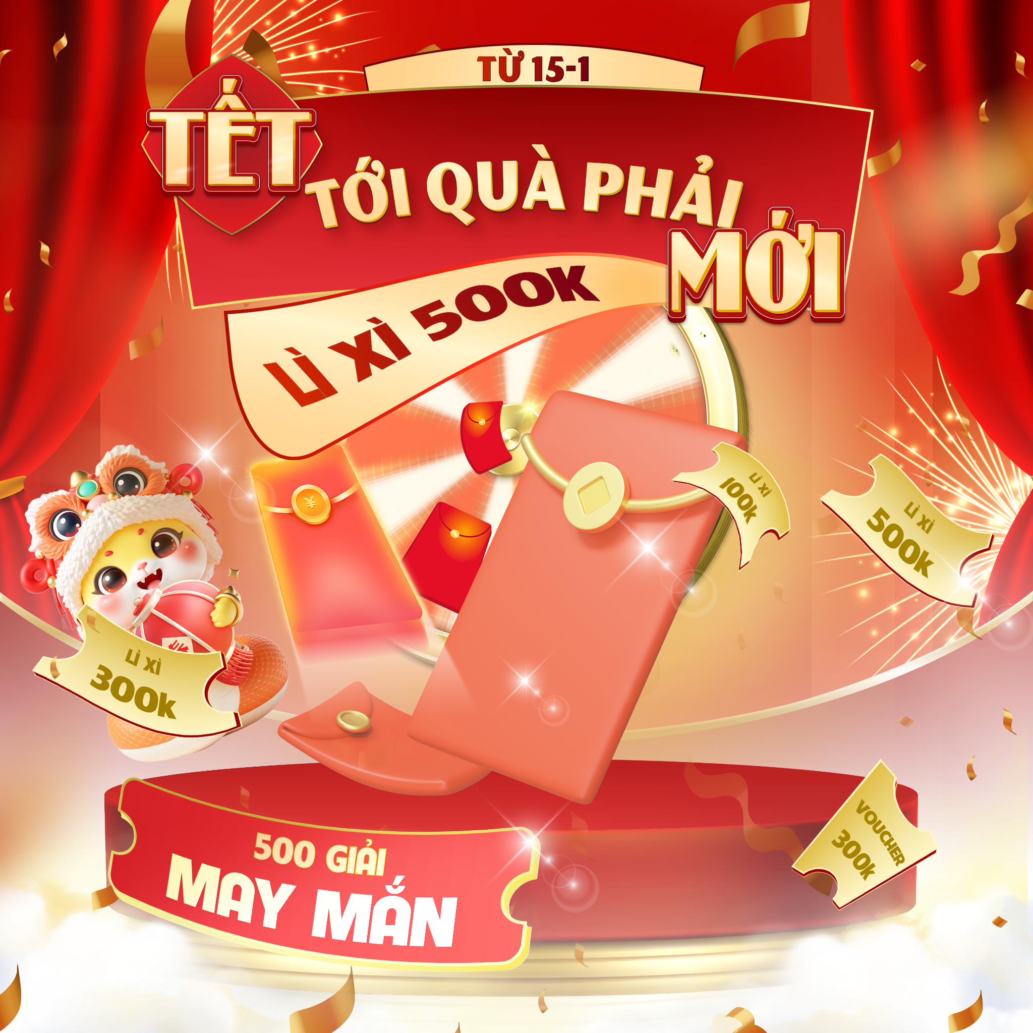 500 giải MAY MẮN : Lì xì 500k, lì xì 200k, lì xì 100k, hàng ngàn voucher mua hàng cực hấp dẫn